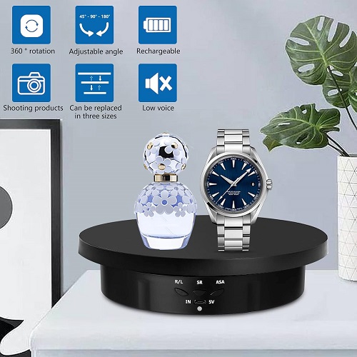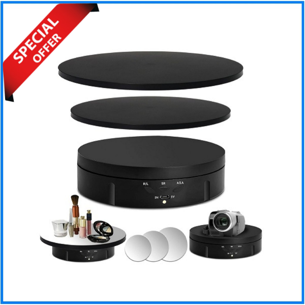 Offers three different sizes of display platforms (14cm, 20cm, and 25cm) to accommodate various objects. The included remote control allows you to easily control the rotation speed and direction of the turntable. The turntable rotates smoothly and quietly, ensuring a professional display for your products. Ideal for showcasing jewelry, cosmetics, collectibles, electronics and more. Made from high-quality ABS material for durability and stability.