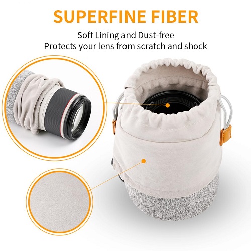 - The drawstring closure is not only secure but also allows for quick and easy access to your lens
