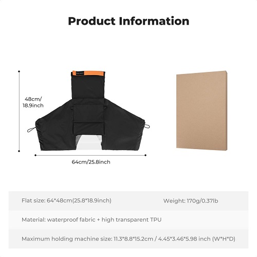Crafted from high-quality waterproof material, the K&F Concept KF13.182 provides full coverage protection for your camera body and lens without restricting access to essential controls. Its transparent design allows clear visibility of the camera screen and settings, while the adjustable openings ensure a snug fit for various camera and lens combinations. Lightweight and foldable, this rain cover is easy to carry and quick to deploy when the weather changes unexpectedly.