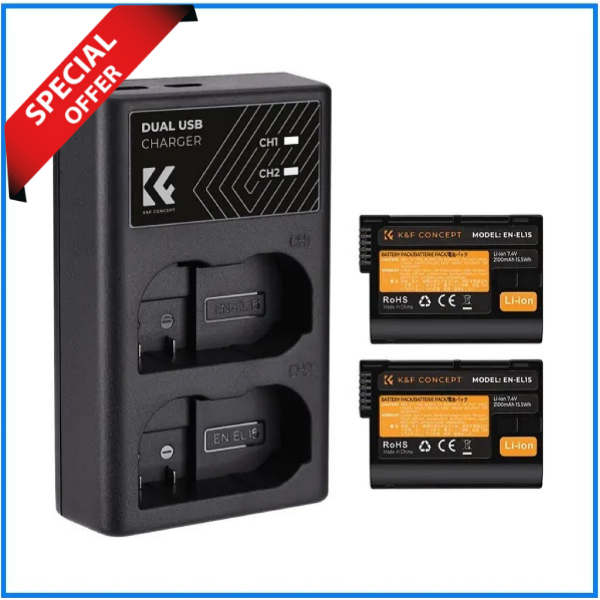 The K&F Concept KF28.0012 EN-EL15 2 Batteries & Charger Set appears to be a convenient and potentially cost-effective alternative to the original Nikon EN-EL15 battery and charger for Nikon DSLR cameras like the D7000, D7100, D7200, D750, D850, D810, D800, D800E, D750, D610, D600, D500, and Z5, Z6II, Z7II, etc. The 2 Batteries & Charger Set seems like a good option for Nikon DSLR users looking for a convenient and potentially cost-effective alternative to the original battery and charger. using high-quality batteries, strict inspection standards, safe and reliable, rest assured that charging and use, with multiple circuit protection to prevent battery overcharge, over-current protection, over-discharge protection, over-voltage protection, short-circuit protection, over-power protection, high-temperature protection, recovery protection. Two batteries fully charged at the same time time time: about 5h – Operating temperature: less than 60°C.