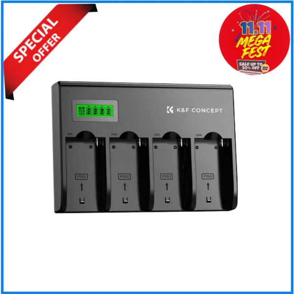 The K&F Concept KF28.0045 4-Channel NP-F Series Battery Charger is a high-efficiency charging solution designed for Sony NP-F series batteries. It allows simultaneous charging of up to four batteries, making it ideal for professionals and enthusiasts who require reliable power for extended shooting sessions. This charger can simultaneously charge up to four NP-F series batteries, making it ideal for professional photographers and videographers who use multiple batteries.