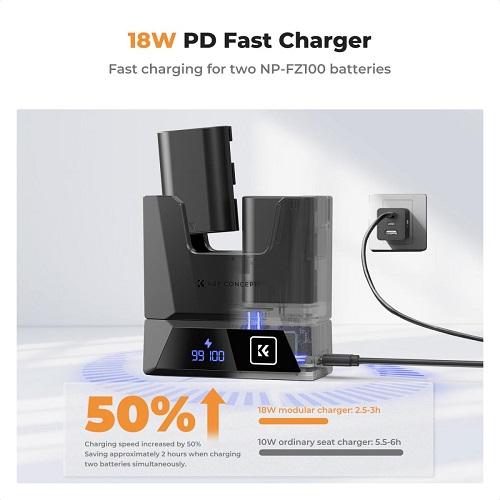 Fast, Smart & Reliable Charging for Canon Creators. The K&F Concept KF28.0057 Dual Slot LCD Fast Charger is the ultimate charging solution for Canon LP-E6 series batteries, designed for photographers and videographers who demand speed, convenience, and precision. Featuring a modular dual-slot design, intelligent LCD monitoring, and USB-C input, this charger delivers powerful, simultaneous charging wherever you go. Whether you’re powering your Canon EOS R5, R6, 5D Mark IV, or 7D Mark II, this compact and travel-friendly charger ensures your batteries stay full and your creative workflow remains uninterrupted.