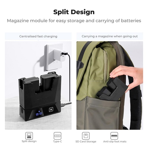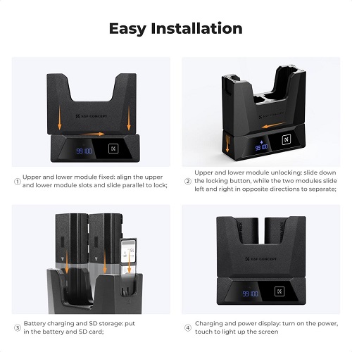 Power Up Smarter – Dual Charging with Real-Time LCD Monitoring. Keep your Sony mirrorless camera batteries fully charged and ready with the K&F Concept Dual Slot Modular LCD Fast Charger, designed exclusively for Sony NP-FZ100 batteries. Whether you’re in the studio or on the go, this intelligent charging solution ensures your gear is always powered and your workflow uninterrupted. With dual charging bays, USB-C input, and a clear LCD screen displaying real-time charging status, this modular charger is the perfect tool for professionals and enthusiasts alike.