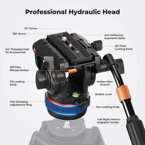 - Professional fluid damping system – smooth pan & tilt motion for stable videos