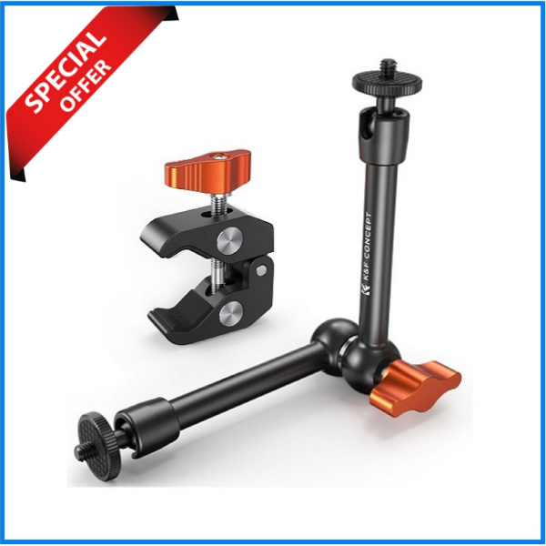 Precision Mounting. Total Flexibility. The K&F Concept KF31.131 MS-32 Magic Arm with Super Clamp Kit is an essential tool for creators and professionals who need flexible, stable, and versatile mounting solutions. This 9.8-inch adjustable articulating arm is perfect for positioning cameras, monitors, LED lights, microphones, and other accessories exactly where you need them—whether in a studio, on a tripod, or mounted to furniture, poles, or rigs. The kit includes a durable aluminum magic arm with two fully adjustable joints and a universal super clamp that provides strong grip on surfaces of various shapes and sizes.