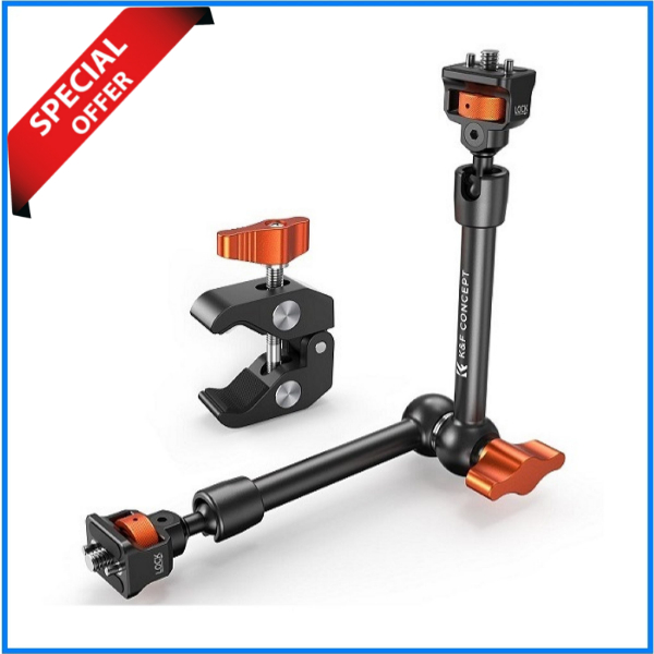 Maximize your mounting flexibility with the K&F Concept 11-inch Magic Arm with Super Clamp Kit—a must-have accessory for photographers, videographers, and content creators. This multi-functional arm is designed to hold lights, monitors, microphones, or other accessories securely in place while allowing full articulation and positioning freedom. Crafted from durable aluminum alloy, the MS-33 Magic Arm features dual ball heads with locking knobs, offering smooth 360° rotation and strong stability.