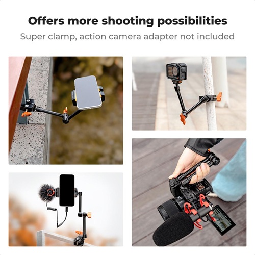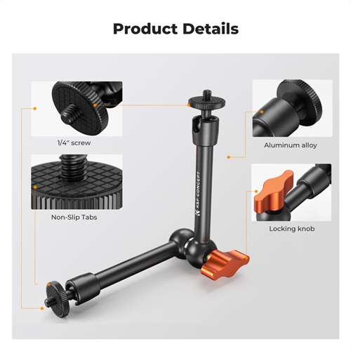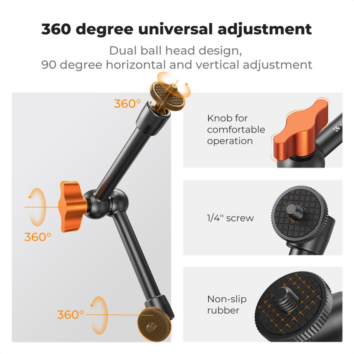 The K&F Concept KF31.199 Multi-Functional 9.8-inch 360° Ball Head Magic Arm – is a compact yet highly versatile mounting solution designed for photographers, videographers, vloggers, and content creators. Featuring dual 360° rotating ball heads and a durable articulating arm, this magic arm allows you to securely mount accessories such as field monitors, LED video lights, microphones, action cameras, smartphones, and more. The 9.8-inch aluminum alloy arm provides flexible positioning while maintaining strong stability, making it ideal for camera rigs, tripods, desks, cages, and studio setups. Engineered with a robust central locking mechanism, the magic arm allows you to adjust multiple angles quickly and lock them firmly with a single knob. This ensures fast setup and reliable performance during professional shooting.
