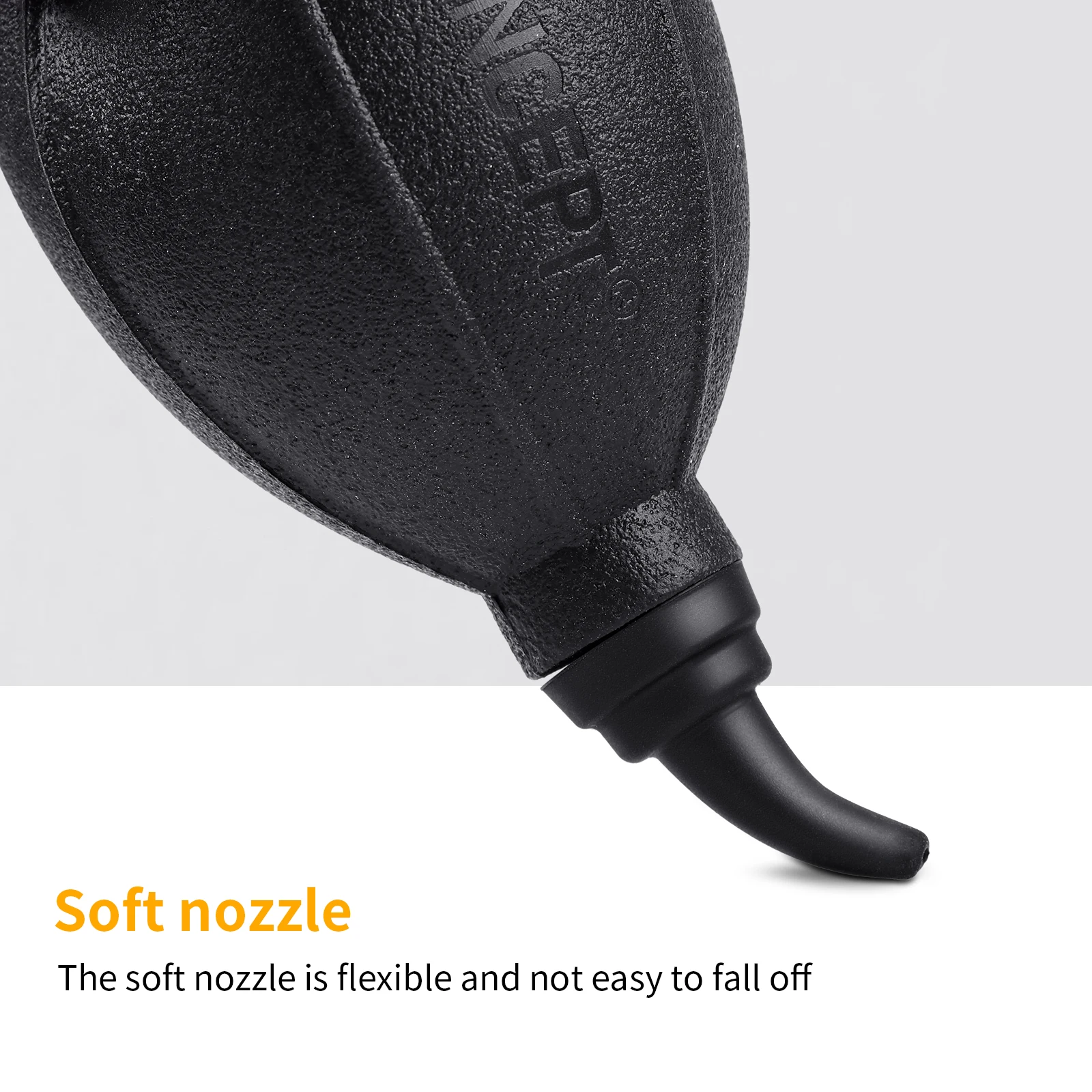 The Air-Blower can direct a powerful stream of air to blow away dust and dirt from your lens, camera body and filter, which is non-toxic and environmental-friendly. Upgraded air nozzle is made of premium silicone, soft and elastic, which can effectively avoid accidental scratches to your optics.