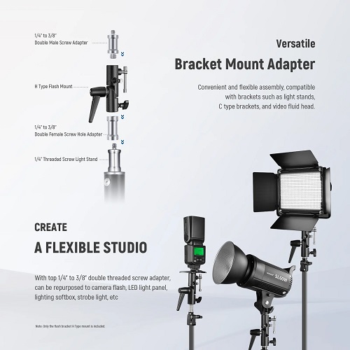 Its universal cold shoe mount supports most camera flashes from brands like Canon, Nikon, Sony, Godox, Yongnuo, and more. The adjustable tilt mechanism provides full control over the angle of your lighting, allowing precise direction for portrait, product, fashion, and creative shoots. Whether you’re building a simple home studio or a professional lighting rig, the NEEWER H-Type Mount offers exceptional strength and reliability without adding bulk.