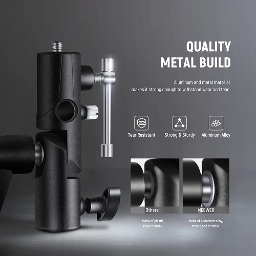 The NEEWER H-Type Mount Camera Flash Holder is a powerful and versatile lighting accessory designed for photographers who demand flexibility and stability in their off-camera lighting setups. Built with durable materials and a user-friendly design, this flash holder allows you to easily mount a speedlight flash, umbrella, and compatible accessories onto any standard light stand—making it an essential tool for both studio and outdoor photography.