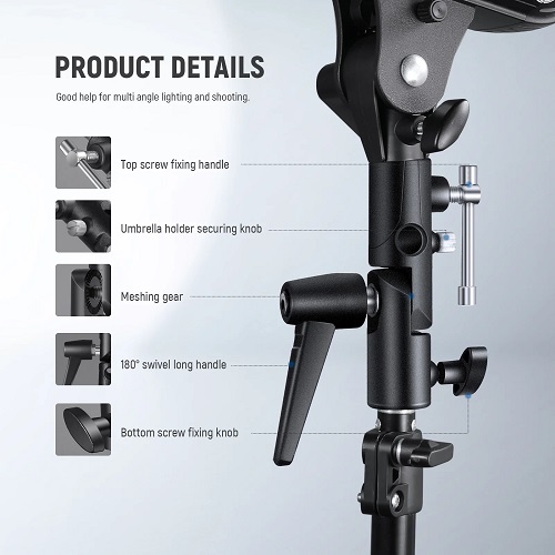 - Adjustable Tilt Mechanism – Allows smooth 180° tilting for precise lighting direction in any shooting setup