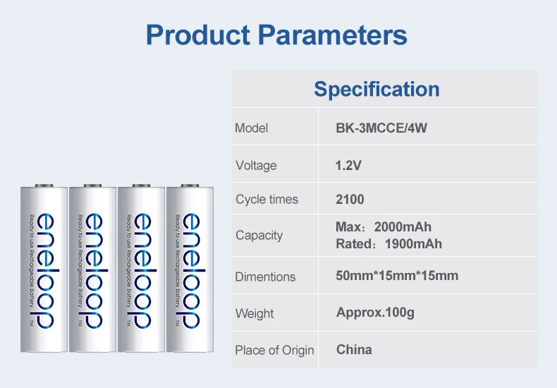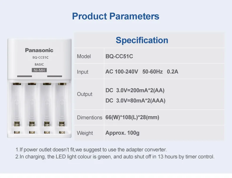 - The efficient Panasonic Eneloop charger uses a low charge current to ensure a long cycle life of your Eneloop batteries.
